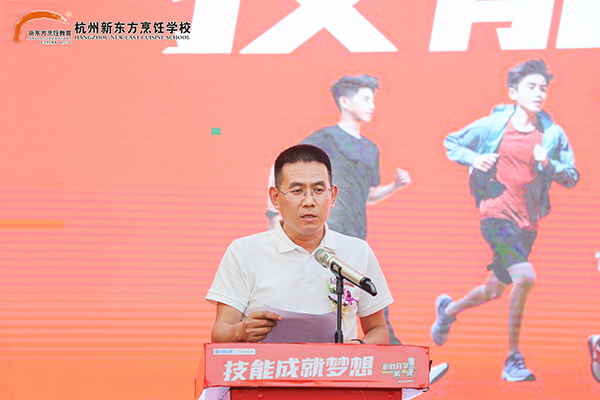 最后,汪巧林校長(zhǎng)上臺(tái)致辭,他由衷地歡迎新生學(xué)子們加入杭州新東方的大家庭,也希望大家能夠勤奮刻苦,積極嘗試。他表示,青春沒(méi)有終點(diǎn),只有新起點(diǎn)。