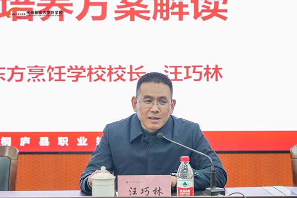 緊接著,杭州新東方烹飪學校的汪巧林老師詳細解讀了《桐廬縣職業(yè)技術(shù)學校與杭州新東方烹飪學校合作方案》。該方案明確了雙方的合作目標、合作內(nèi)容、合作方式以及預(yù)期效果,旨在通過資源共享、優(yōu)勢互補,共同培養(yǎng)更多具有創(chuàng)新精神和實踐能力的烹飪?nèi)瞬拧?/p>