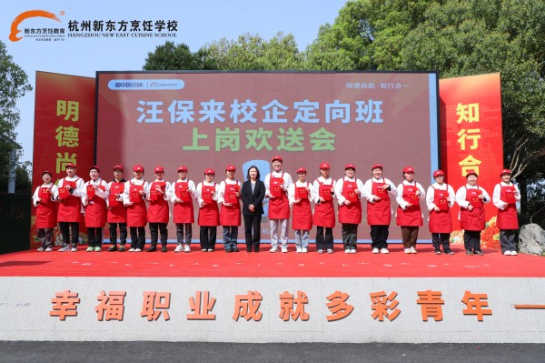 近日,杭州新東方烹飪學校的操場上洋溢著一片喜慶與溫馨的氛圍,一場特別的歡送會——“汪保來校企定向班畢業(yè)上崗歡送會”在這里隆重舉行。
