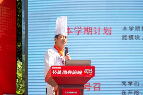 活動最后,校長上臺致辭。他首先向滿懷夢想、朝氣蓬勃的新同學(xué)們表示最熱烈的歡迎,歡迎大家加入杭州新東方這個傳承技藝、創(chuàng)造美味的大家庭,同時也向如期返校的同學(xué)們致以誠摯問候。