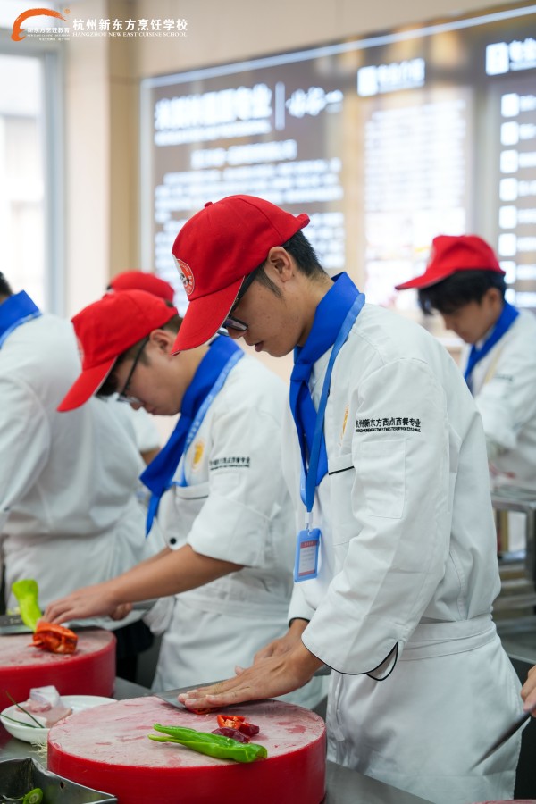 在杭州新東方烹飪學(xué)校的實訓(xùn)教室里,總能看到一個專注的身影,他手持菜刀,按照標(biāo)準(zhǔn)的姿勢反復(fù)練習(xí)切配,眼神里滿是認(rèn)真與執(zhí)著。
